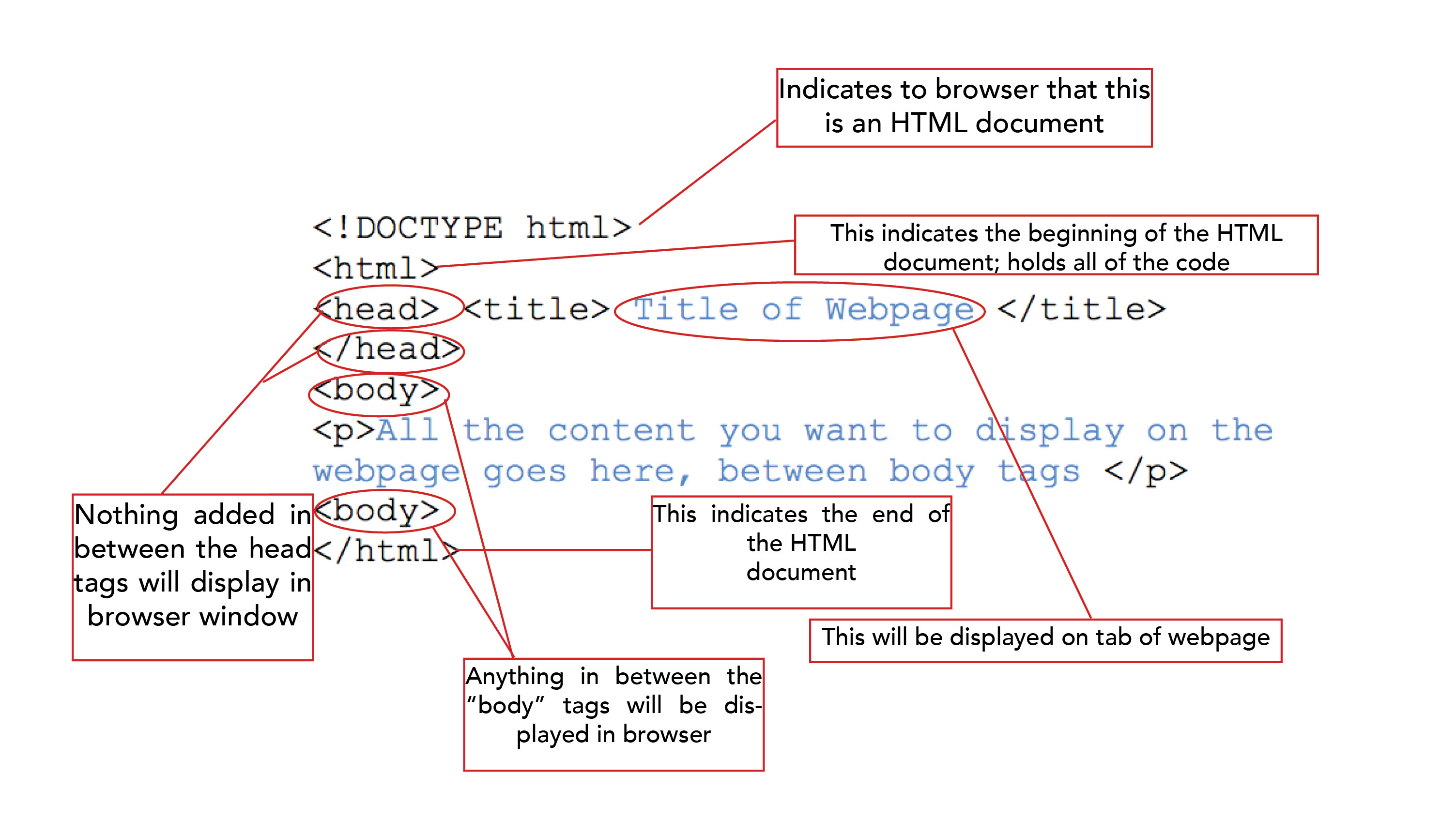 All of the content you want to appear on your webpage will go between the <body> and </body> tags.